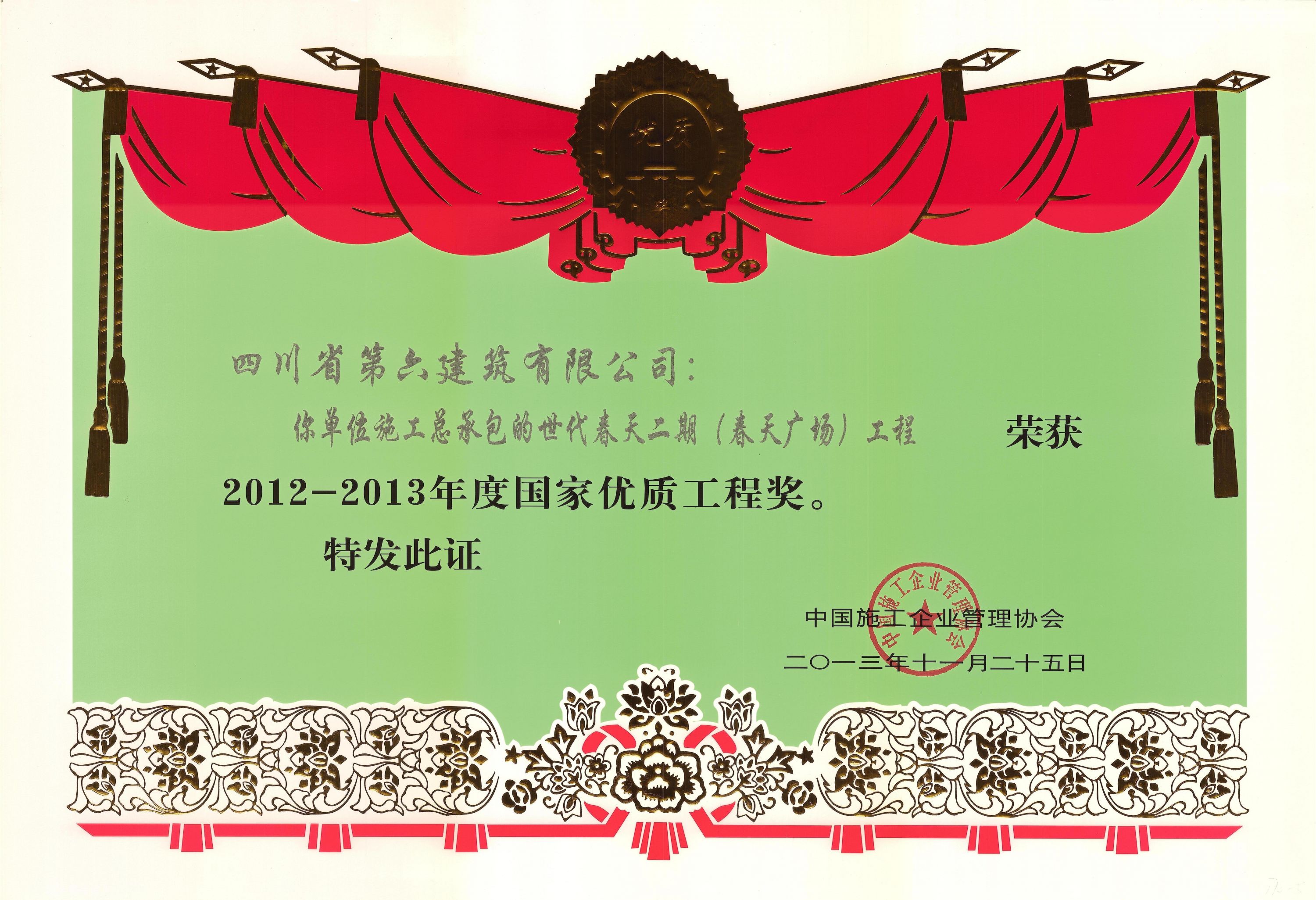 四川省優質工程“天府杯”金獎32項、銀獎16項