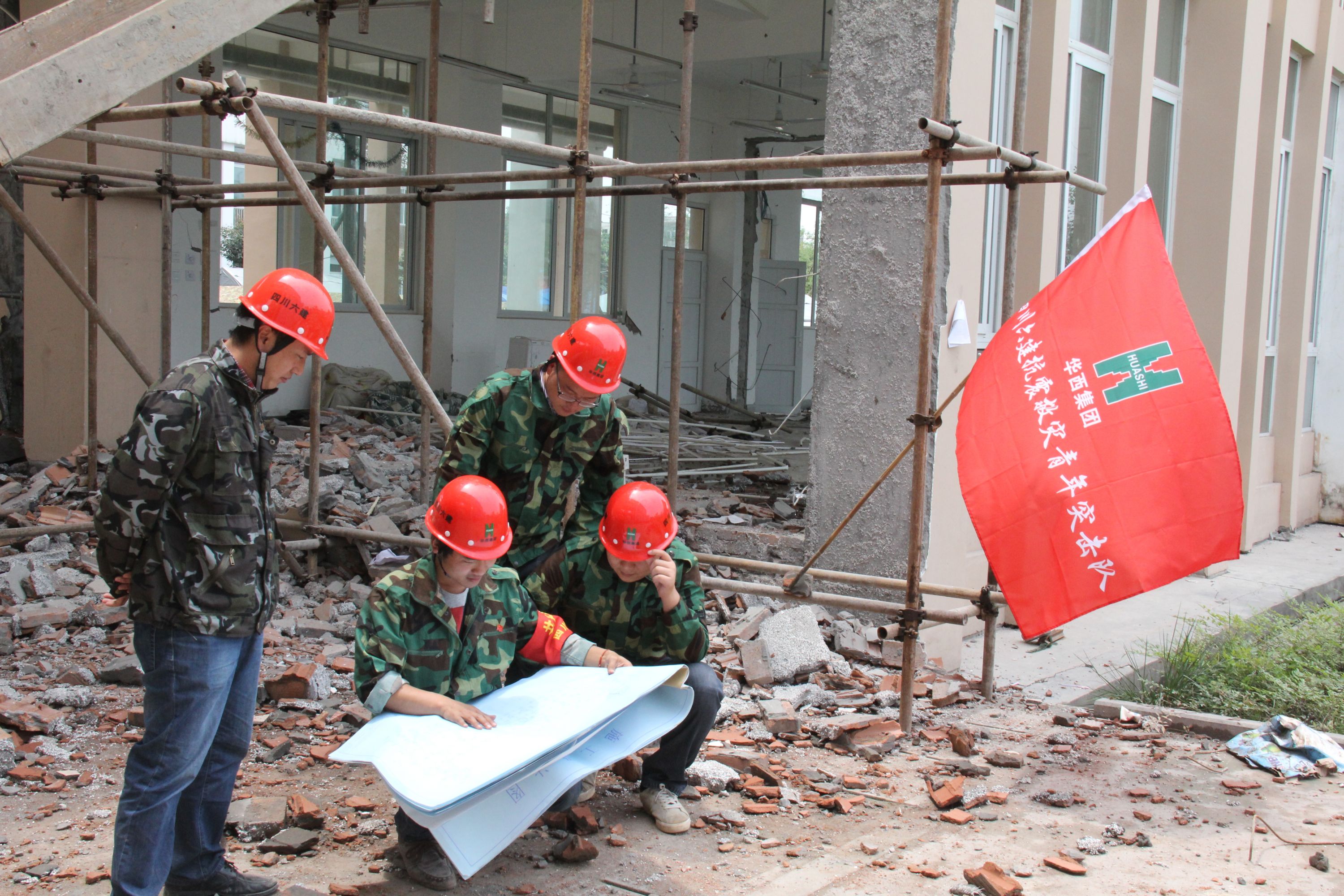 青年突擊隊(duì)在蘆山地震現(xiàn)場(chǎng)進(jìn)行房屋鑒定工作