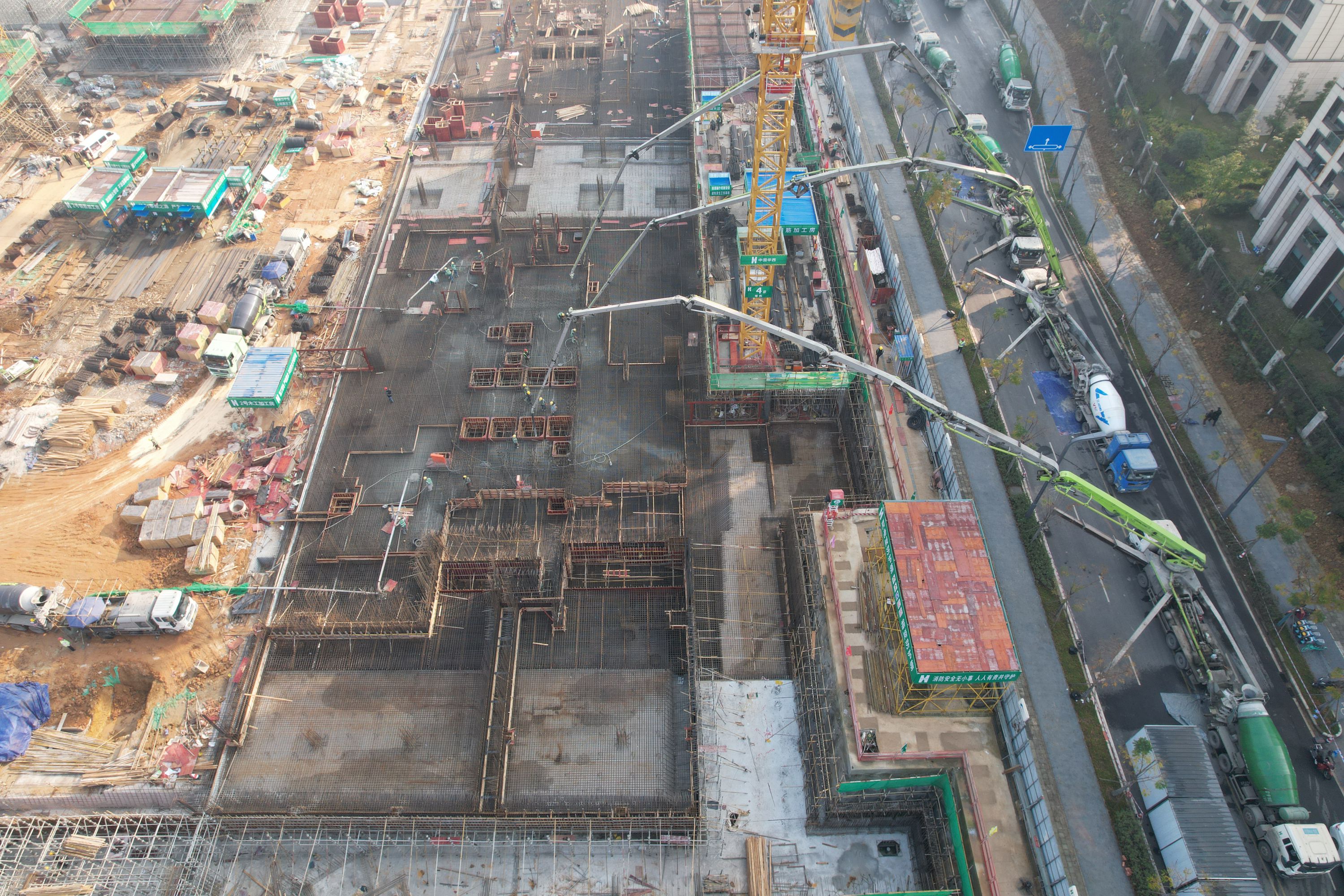 元旦新歲啟,奮斗正當時!五泵齊發,連續澆筑,歷經37小時,龍潭寺TOD三期D、E地塊項目順利完成了5540m3首塊(E-5號樓)大體積筏板混凝土澆筑,這也標志著項目高層建設正式進入主體結構施工階段!
