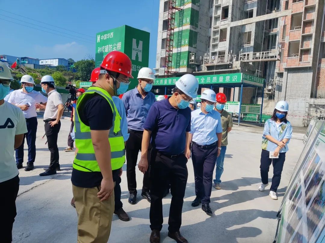 余長(zhǎng)明、鐘渝一行深入項(xiàng)目施工現(xiàn)場(chǎng),聽(tīng)取了項(xiàng)目部關(guān)于安全、質(zhì)量、進(jìn)度、防疫等方面的工作匯報(bào),重點(diǎn)對(duì)現(xiàn)場(chǎng)安全生產(chǎn)、文明施工、疫情防控落實(shí)等情況進(jìn)行了檢查,并參觀了項(xiàng)目樣板間。