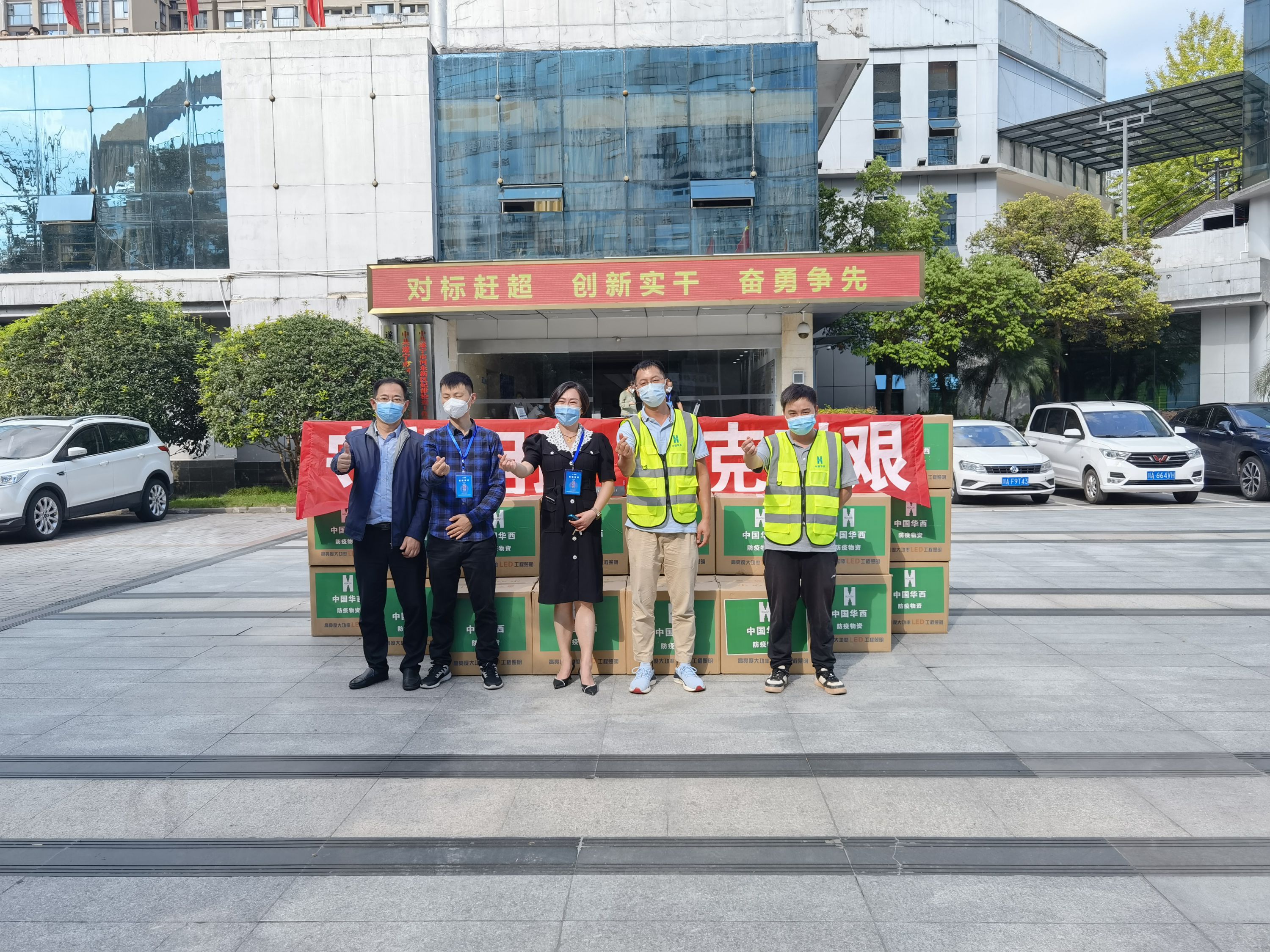 疫情來勢洶洶,各類防護用品緊缺,項目部想盡辦法調度應急資源,將口罩、免洗洗手液、消毒濕巾、消毒液等1000套防疫物資送到了遂寧市河東管委會手中。