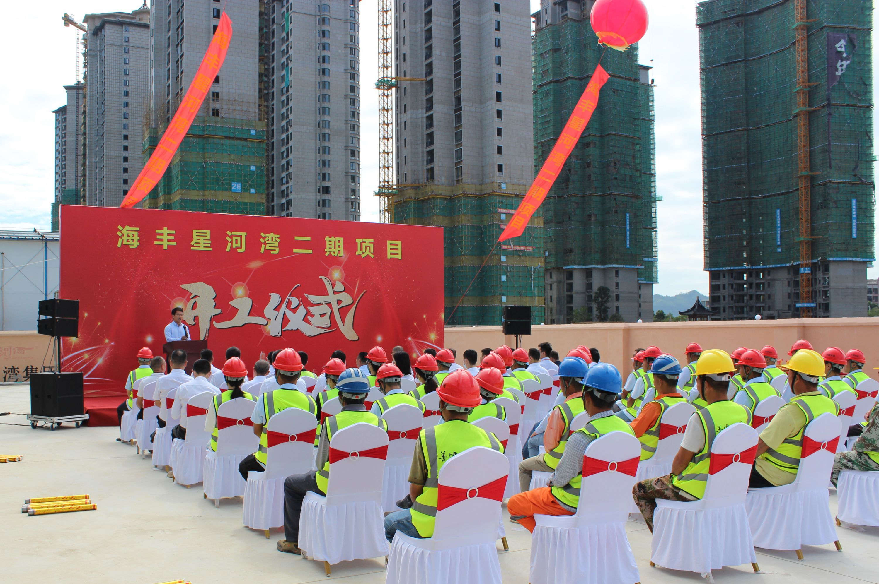 10月18日上午,廣州公司承建的海豐星河灣二期工程舉行開工儀式。海豐縣星河灣房地產有限公司總經理黃初平、廣州公司黨總支書記龔文出席開工儀式,廣州公司機關職工代表、項目部職工代表和監理代表等四十余人參加開工儀式。