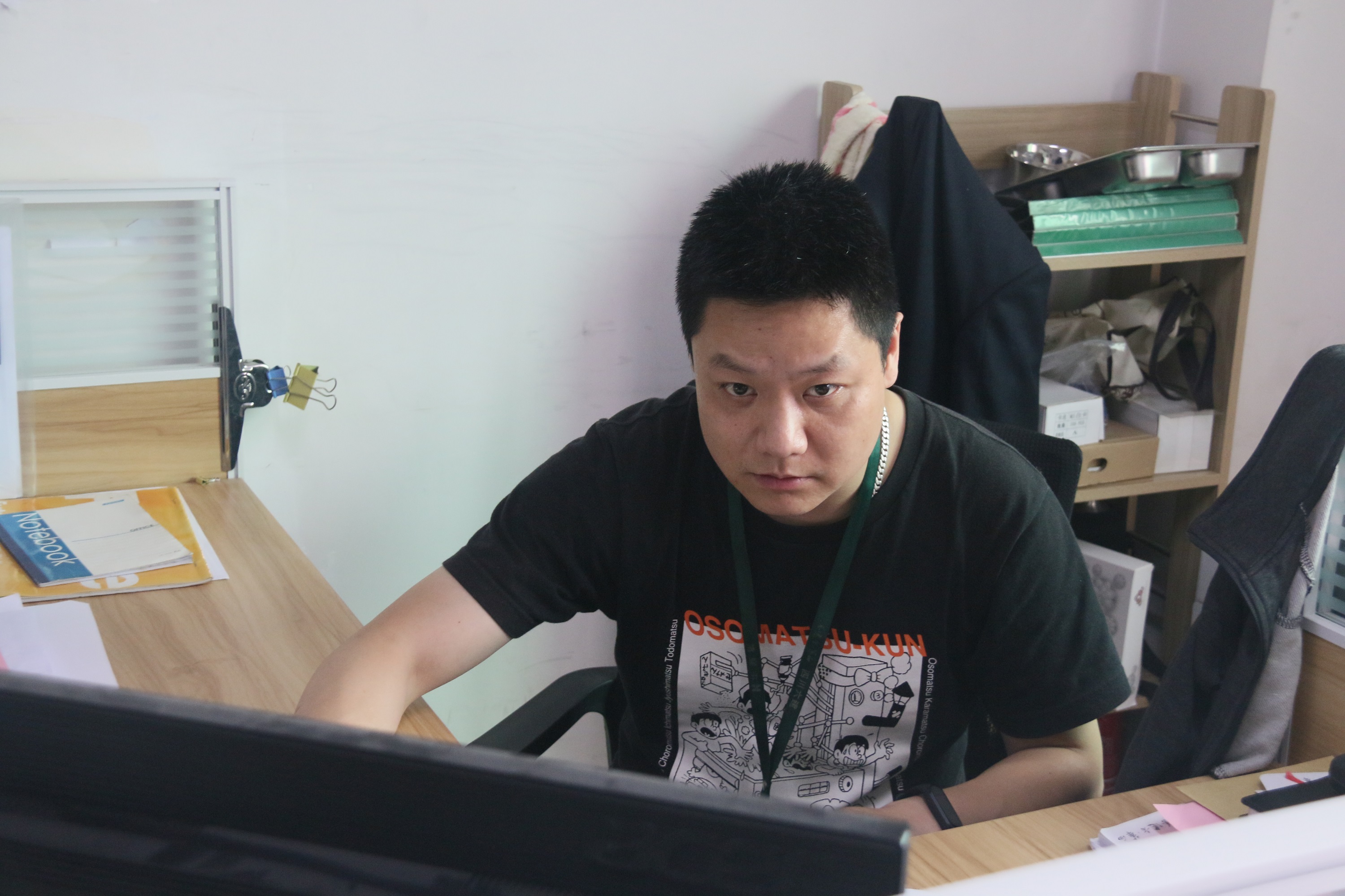 29號一大早,他就來到公司開始協調各個環節的工作,部門之間更換辦公室、舊桌椅的轉運、安裝新桌椅的順序等,當起了“苦力”,跑上跑下一刻也沒休息過。在幫其他部門搬運舊桌椅時,尹一帆被拖車壓了腳,就休息了十幾分鐘,又一瘸一拐的投入了工作中。當天下班前,所有的新桌子終于都安裝到位,舊桌椅全部轉運到庫房等待處置。公司里其他同事們陸陸續續下班回家,但尹一帆的工作還沒有結束,因為運送最后一批椅子的貨車堵在了下班高峰期的路上,晚上8點過,貨車終于到了公司,他又馬不停蹄的和工人一起下貨,把椅子送到各個辦公室,在確認數量無誤后,才終于松了口氣,彼時已經是晚上10點。