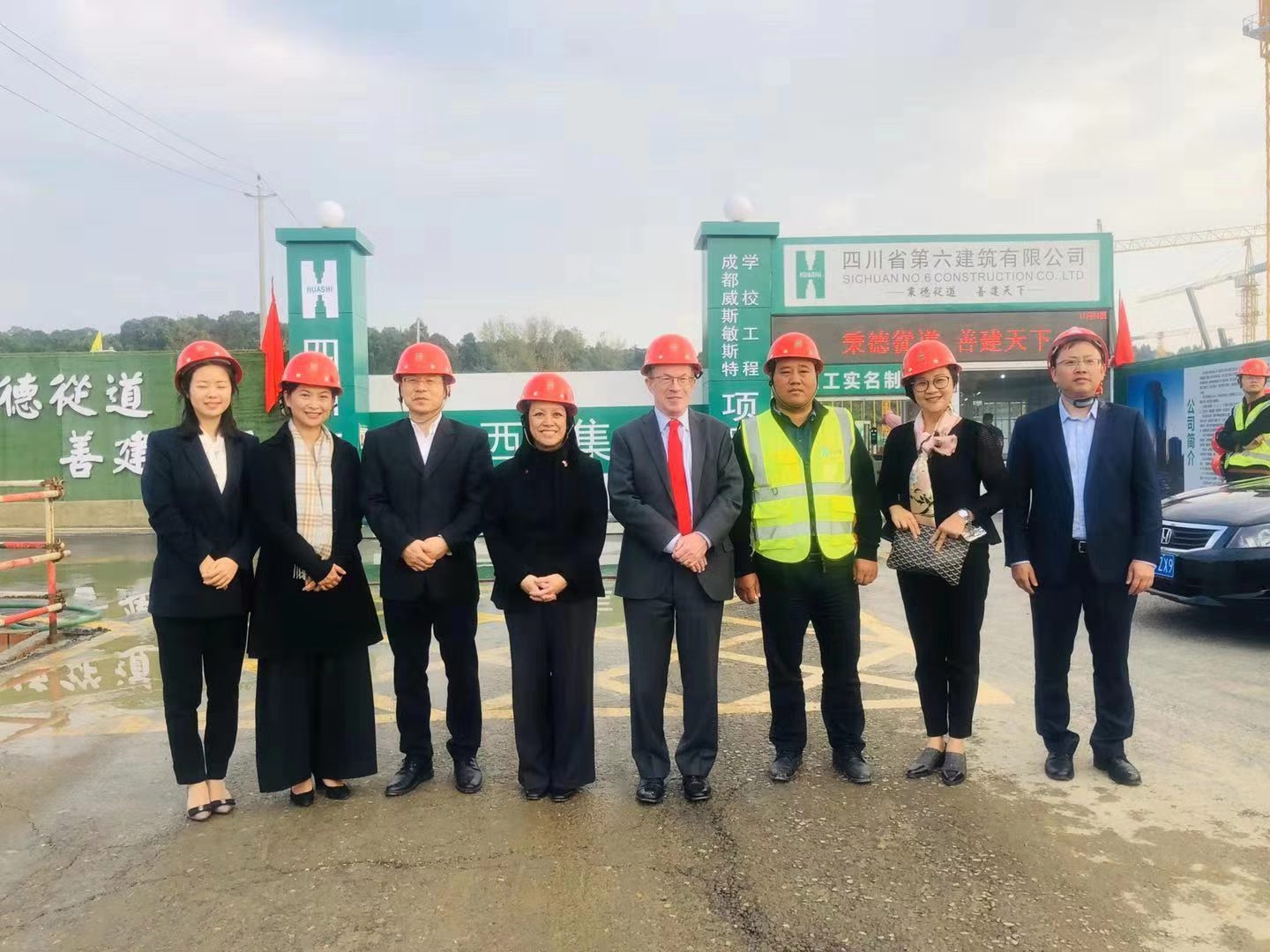 近日,英國駐重慶總領(lǐng)事館總領(lǐng)事艾佩詩女士(Ms Cecille EI Beleidi)、雙流區(qū)政府副區(qū)長王小樂一行調(diào)研由三分公司承建的威斯敏斯特學(xué)校項目。一踏進(jìn)成都威斯敏斯特學(xué)校項目,總領(lǐng)事被繁忙的工作場景所吸引,建設(shè)現(xiàn)場熱火朝天、井然有序,鋼筋混泥土支柱拔地而起,龐大的校園輪廓已勾勒成形!綠樹環(huán)繞的淺山背景,形成了成都威斯敏斯特學(xué)校獨有的天際線,環(huán)繞學(xué)校的小河,岸邊的蘆葦和不時略過的飛鳥,已然形成一幅綠色、自然、生態(tài)的學(xué)校畫面。總領(lǐng)事詳盡詢問了項目的建設(shè)計劃和執(zhí)行情況,由衷地贊嘆成都威斯敏斯特學(xué)校日新月異且優(yōu)質(zhì)高效的建設(shè)進(jìn)度。目前,成都威斯敏斯特學(xué)校項目正按照既定目標(biāo)順利推進(jìn),部分區(qū)域地下室底板施工已完成,1-A、1-C教學(xué)樓,2、3號學(xué)生公寓基礎(chǔ)施工已完成,預(yù)計2020年9月建成開學(xué)。
