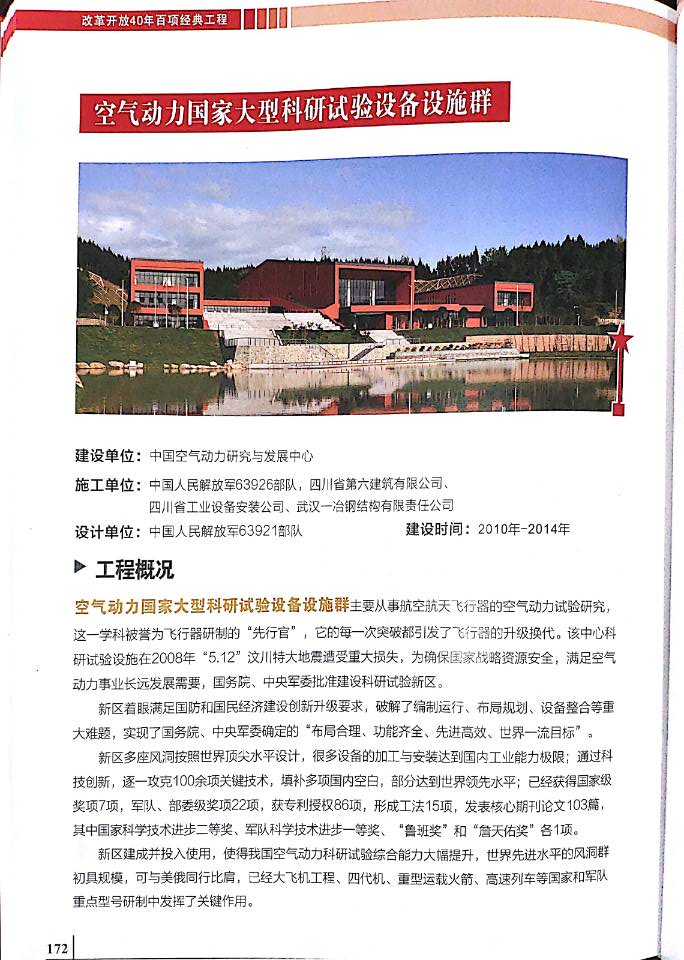 近日,在北京,由中國建筑業協會主辦并召開的“激蕩四十年,改革正當時——改革開放40周年建筑業在行動紀念大會”上,由公司參與建設的“空氣動力國家大型科研實驗設備設施群”,在喜獲“國家優質工程金獎”的基礎上被評為改革開放四十周年百項經典工程。