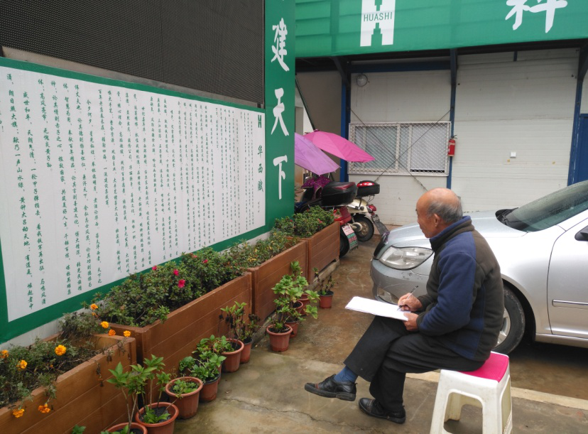 “年輕人,這個字念啥?”在市政分公司泰華錦城項目部,一位穿著樸實,頭上竄出了幾絲銀發的師傅,一手拿著本子,一手拿著一支筆,坐在項目部那塊寫滿了“華西賦”的廣告面前。