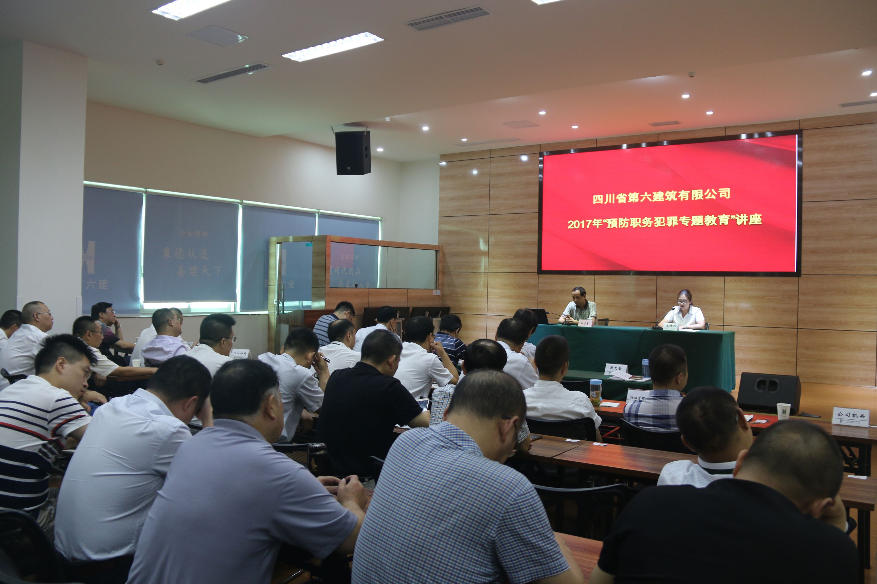 為提高公司干部職工拒腐防變的能力,形成自覺守紀(jì)律、講規(guī)矩意識(shí),7月14日,公司邀請(qǐng)金牛區(qū)檢察院反貪局局長(zhǎng)劉志勇到公司為廣大干部職工做了一堂精彩的“預(yù)防職務(wù)犯罪專題教育”講座。公司在家領(lǐng)導(dǎo)出席講座,另有公司機(jī)關(guān)各部門負(fù)責(zé)人、高級(jí)主管;成都地區(qū)各單位黨總支書記/直屬黨支部書記、總經(jīng)理;各單位部門負(fù)責(zé)人和項(xiàng)目經(jīng)理代表,共計(jì)67人參加講座。