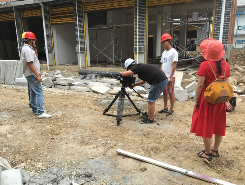 烈日高照、塵土漫天、噪聲嘈雜,攝制組也顧不了那么多,一把把地抹掉汗珠,繼續(xù)拍攝,似乎只有這樣,才能把重建團隊的日常拍的更真實。不論是項目部的安全標識牌、還是項目工地的一磚一瓦、亦或是工人施工時的神態(tài),拍攝鏡頭一次次的掃過,追蹤著這些細節(jié)。我們的腳步踏過了項目施工現(xiàn)場、學校的角落,西江索橋、平安路,抗震廣場……攝制團隊親身感悟著這個城市的發(fā)展、生機以及希望。