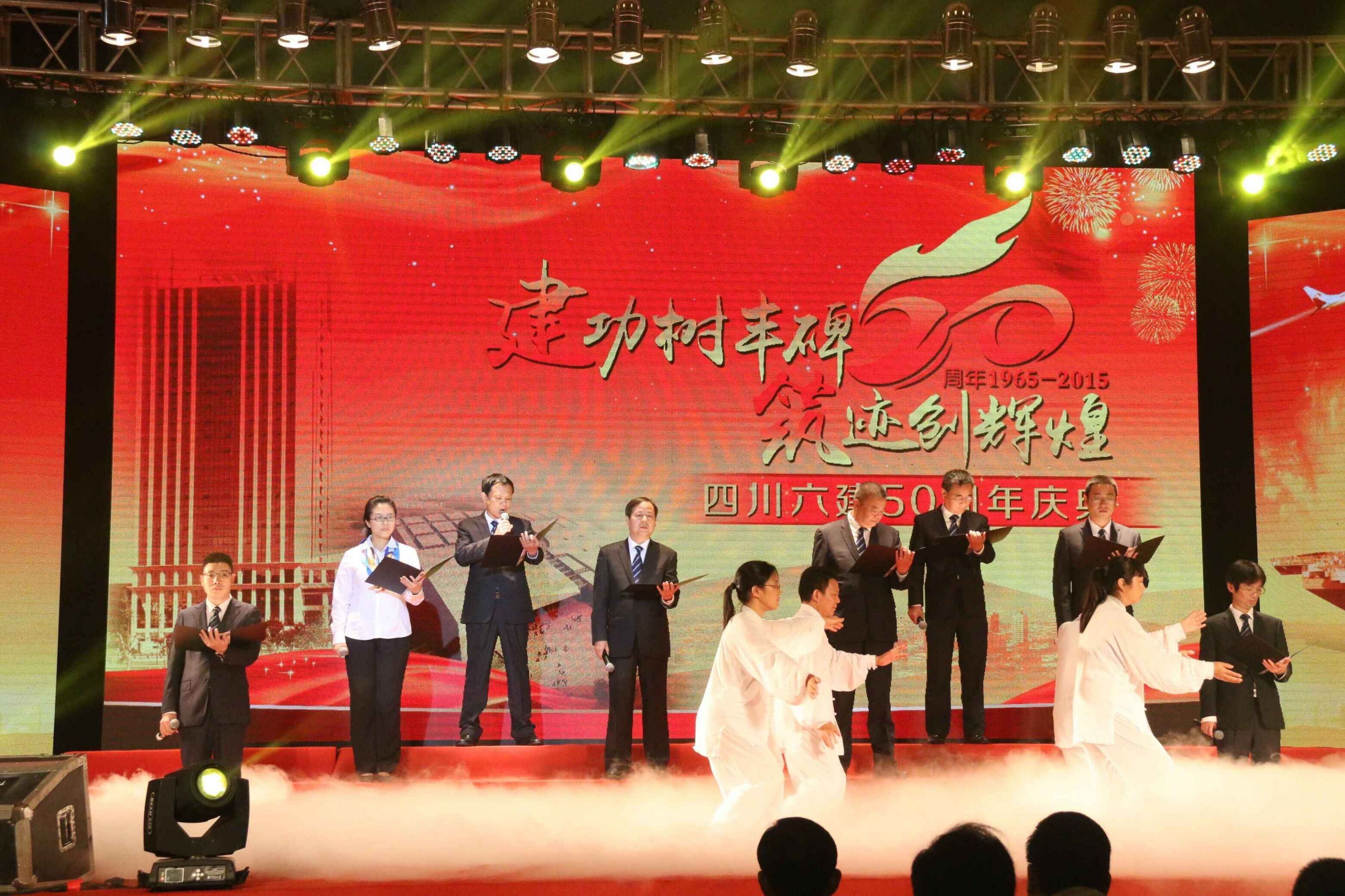 集團黨委書記劉平;副總經理孫前元;總工程師陳躍熙;副總經理楊碩;總經濟師李齊輝;工會主席武勇以及總部機關部門相關同志也來到活動現場與六建員工們共同慶祝。劉平書記代表華西集團黨政工團對六公司成立50周年表示熱烈的祝賀。他在致辭中表示:六公司的干部隊伍和職工隊伍是一支能夠打硬仗、打勝仗的隊伍。他希望六公司進一步解放思想、開拓前進,向著行業一流的“百億六建”而努力奮斗。