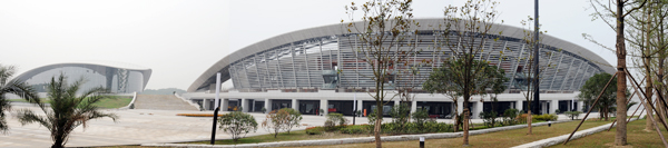 中國成都現(xiàn)代五項賽事中心,是為承辦今后五年在成都舉行的現(xiàn)代五項世界錦標(biāo)賽而興建的一座現(xiàn)代化的專業(yè)體育場館建筑聚落。 中心園區(qū)占地約400畝,工程總建筑面積45000㎡,工程造價5億元。整個場館分為游泳擊劍館、體育場、新聞賽事中心、馬廄、熱源中心五個主要單體建筑。 中國現(xiàn)代五項賽事中心也是目前世界上唯一一個將現(xiàn)代五項的全部比賽項目集中于一個場地內(nèi)的綜合性體育場館,可一次性安排10000人次就座。 從2009年5月底立項選點、9月27日收到第一版施工圖、10月初開工到2010年7月10日竣工,僅用了9個月時間。9個月完成32個月的工程量,四川六建公司的建設(shè)者刷新了全國大型體育場館聚落建設(shè)紀(jì)錄—— “現(xiàn)代五項”工程____ 六建人的超常規(guī)紀(jì)錄 錦江東去,綠波汨汨。 成都母親河在雙流正興與華陽兩鎮(zhèn)的交接處悄然形成了一個灣,幾座淺山隆起,藏風(fēng)聚氣,林木秀麗。 在山水環(huán)抱中,一組極具現(xiàn)代風(fēng)格體育館翼然矗立,這就是中國成都現(xiàn)代五項賽事中心建筑聚落。 遙瞰賽事中心場館主體,流暢的線條,雕塑般的造型猶似幾只大鵬,自天而降;亦如數(shù)枚潔白晶瑩的貝殼散落在現(xiàn)代田園的美景之中;又若一闕建設(shè)者演奏的交響曲,輕盈而宏大。 國際現(xiàn)代五項聯(lián)盟主席克勞斯舒曼博士用了八個字簡潔地評價:“震撼、感動、奇跡、完美!” 新的建設(shè)傳說 這是一個傳說。 新的建設(shè)傳說,由一組數(shù)字顯示: 僅在場館主體建設(shè)封頂,累計進(jìn)場鋼筋7800余噸,架管5500噸,投入木模板66000張,木方3400立方米,完成混凝土澆筑42000立方米,B/C線道路土方累計開挖37.3萬立方米,回填17.5萬方方米,總爆破量22.8萬立方米,雨污水管鋪設(shè)1310米,累計完成產(chǎn)值約1.8億元。 新的建設(shè)傳說,由五項超難度施工記錄構(gòu)成: 第一項紀(jì)錄——現(xiàn)澆鋼筋混凝土圓柱及一道總長度400米的雙曲環(huán)形大梁; 第二項紀(jì)錄——環(huán)形大梁上設(shè)38個鋼支座用于直接支撐一萬多㎡的鋁合金球面單層網(wǎng)殼結(jié)構(gòu); 第三項紀(jì)錄——后張法預(yù)應(yīng)力大梁,預(yù)應(yīng)力梁截面尺寸900×2000,跨度18米; 第四項紀(jì)錄——鋼桁架支撐結(jié)構(gòu)為Y型鋼筋混凝土柱; 第五項紀(jì)錄——中國成都現(xiàn)代五項賽事中心體育場屋面鋼桁架安裝。 新的建設(shè)傳說,凝聚著建設(shè)者團(tuán)隊的榮譽(yù),奮戰(zhàn)的艱辛,智慧的創(chuàng)造,體現(xiàn)著四川六建的企業(yè)文化的核心價值。 派出精銳突擊隊 “簡直是從鄉(xiāng)村,到了田壩,豁然一片黃泥土啊!” 這是四川六建中國成都現(xiàn)代五項賽事中心項目部來這里的第一眼印象。在荒灘上續(xù)寫傳奇,六建人有心理準(zhǔn)備。 “中國成都現(xiàn)代五項賽事中心”項目部全是精兵強(qiáng)將,是四川六建組織的精銳突擊隊: 曾濟(jì)鑫,50后,高級工程師、全國勞模; 李剛,60后,工程師; 鄧偉,70后,工程師; 薛慶,80后,工程師; 項目部管理人員22人,人人戰(zhàn)功卓越,個個生龍活虎。 預(yù)留的施工時間異常短暫。從2009年5月底立項選點,到9月底收到第一版施工圖,將田園、廠房變成施工現(xiàn)場到總體工程竣工,施工時間僅有9個多月。 由于場館承接的是專業(yè)性、國際性的比賽,其建筑起點高、功能完備、景觀綠化、裝修多樣化,而場內(nèi)道路、場地雨污水管道、水電管網(wǎng)、室外光彩工程、景觀、綠化工程等都需要在此期間穿插施工。360畝場地、45000平方的房建的全面鋪開施工,資金難度可想而知;攤銷材料投入、后勤保障投入、施工生產(chǎn)協(xié)調(diào)管理投入的大幅增加可想而知。 “這里泥土是下雨一團(tuán)糟,天晴一把刀。為了加固地基,在場館的主場地下,我們整整打進(jìn)了3000多根鋼管。”項目經(jīng)理李剛說。 然而,項目部并不是孤軍奮戰(zhàn),在這里不時閃動著華西集團(tuán)公司各級指揮者的身影。 四川華西集團(tuán)董事長陳貴林掛帥現(xiàn)代五項賽事中心項目總指揮長,三次主持有現(xiàn)代五項指揮部領(lǐng)導(dǎo)和建設(shè)單位雙流興城公司領(lǐng)導(dǎo)參加的項目重大協(xié)調(diào)會議,就該工程進(jìn)展情況、存在問題、需解決的困難進(jìn)行商議,保障了項目施工的正常運(yùn)作,為項目提前竣工奠定了堅實的基礎(chǔ)。 孫前元副總經(jīng)理在關(guān)鍵時也率領(lǐng)集團(tuán)公司專家組來這里論證解決技術(shù)難題。 公司董事長楊承志、公司總經(jīng)理凌鋒,更是每次來直奔施工現(xiàn)場,然后才回到項目部臨設(shè)基地督促工作。公司總工程師趙崇賢竣工前四個月都在施工現(xiàn)場督戰(zhàn),幫助解決困難。分公司經(jīng)理曾濟(jì)鑫從接到任務(wù)就和項目部共甘苦、同進(jìn)退。 超常規(guī)紀(jì)錄 工程五項紀(jì)錄,歷史將在這里落下莊重的一筆。 第一項紀(jì)錄——現(xiàn)澆鋼筋混凝土圓柱及一道總長度400米的雙曲環(huán)形大梁。 施工現(xiàn)場在游泳擊劍館:建筑面積24400㎡,座位數(shù)5000座。本工程主體采用全現(xiàn)澆的鋼筋混凝土框架結(jié)構(gòu)體系。屋蓋采用鋁合金球面單層網(wǎng)殼結(jié)構(gòu)體系。本屋蓋體系為中國西部地區(qū)首次采用。建成后的比